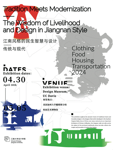 本次展览深入探索了江南地区在衣、食、住、行四个方面设计的传统韵味与现代创新之美的完美融合。江南,作为中国文化的重要发源地,其设计不仅承载着深厚的传统文化,也展示了对现代生活的洞察与创新。本次展览本展览旨在向世界展现江南设计的独特魅力,展示中国传统文化与时代精神在设计上的交融与创新。