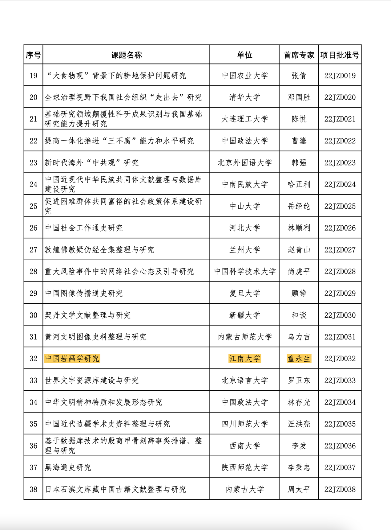 2022年12月29日,教育部公布了2022年度教育部哲学社会科学研究重大课题攻关项目立项名单,我院童永生教授领衔申报的“中国岩画学研究”获批立项,这是我校艺术学学科领域继王峰教授获批国家社科基金艺术学重大项目之后的又一重大突破。