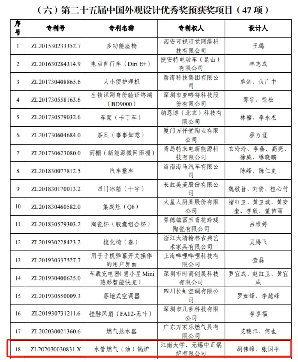 日前,第二十五届中国专利奖评审结果公布,日本无码 胡伟峰教授的“水管燃气(油)锅炉”外观设计专利荣获中国外观设计优秀奖。这是我校外观设计专利首次荣获中国专利奖,实现了新的突破