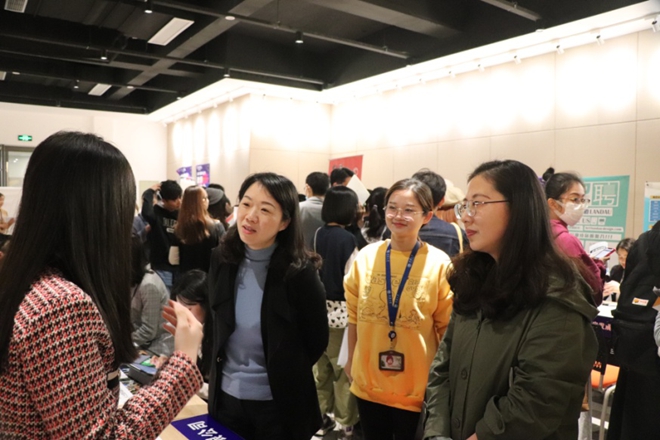 双选会期间,学院党委副书记王晖、分团委书记陆芳来到招聘现场,就设计人才需求情况和毕业生发展情况与招聘企业深入交流探讨。北京快手科技有限公司HR柯琦表示:无论是在求职过程中设计学子在作品集上展现的专业能力,还是入职后在岗位上表现的综合素质都非常优秀,受到整个企业上下的好评,企业希望今年能够吸收更多日本无码