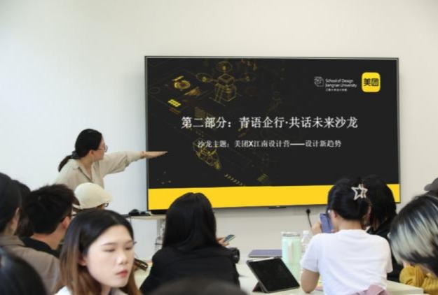 沙龙中,主讲人再次解读设计岗位矩阵,帮助学生明晰体验设计师、创意设计师以及AI创新岗位等前沿领域的职业发展路径。在互动环节,学生们踊跃提问,围绕“AI时代设计师的核心竞争力”“美团国际化业务设计挑战”等话题与美团负责人展开热烈交流。