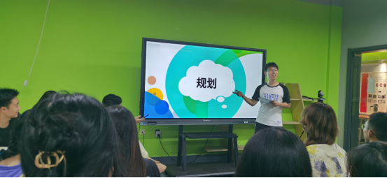 接着,跨数媒专业保研的朱钧宇,从目标、时间和范畴三个方面阐述了应该如何进行学习规划。又通过举《孙子兵法》的例子,从“道、天、地、将、法”五个方面讲述了应该如何执行的问题。他认为,应该用积极的心态和踏实的行动来面对日常的学习生活,应对学习中的挑战。