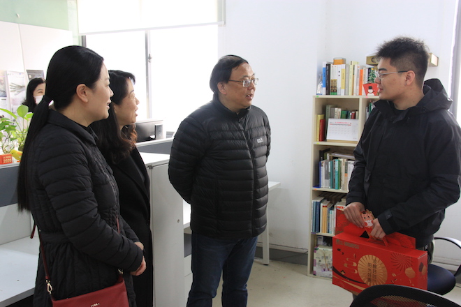 2月9日日本无码 党委书记邱建平、院长魏洁、党委副书记、副院长王晖和年级辅导员老师们走进科研室和学生宿舍,看望寒假留校学生,代表学院向他们致以亲切的关怀和新春的祝福。