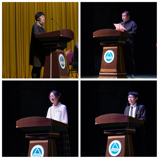 服装工程2001班蒋阗行代表本科新生发言,她愿同学们能够扎实基础,打破常规的思维,在追逐至善的人生路上永不停歇;希望同学们要以学习为主,学会自我学习,以更高的目标要求自我;愿同学们能在最好的时代引领属于他们的方向。设硕2007班赵振皓代表研究生新生发言,他希望新生们能够保持大学生涯的那份好奇心和求知欲,跳出思维束缚;吸收学习新的知识以及技术,保持设计学科交流的特色,为日本无码