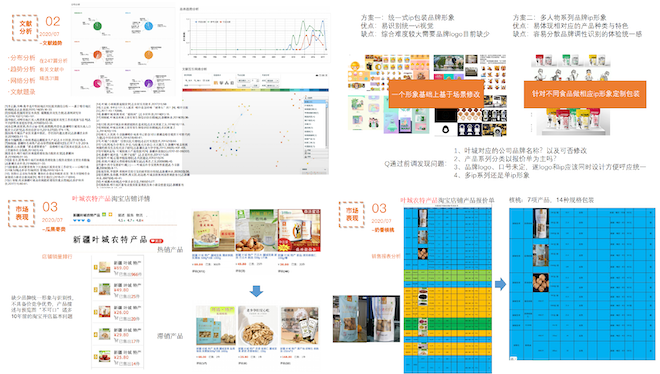 团队师生在充分的线上调研基础上,共展开近10次全体讨论会议,不仅对两地民族文化、地理环境和人文风貌做了详细的梳理和探索,还对现有互联网电商的商业模式、包装设计上的不足做出总结,积极寻找技术与数据作为坚实基础。同时,团队积极对接叶城和从江当地的一线扶贫干部,不断了解实地情况,调整实践思路。虽然受到疫情防控的限制,队员们也未放弃线下实地考察,在各地农产品集市、超市展开了大量调研,从相关农产品的产品结构、包装设计形式、材质选择、销售定价情况、运输状况等方面入手进行数据资料的搜集整理,随机采当地销售员和消费者,探索群众对扶贫产品的消费心理。