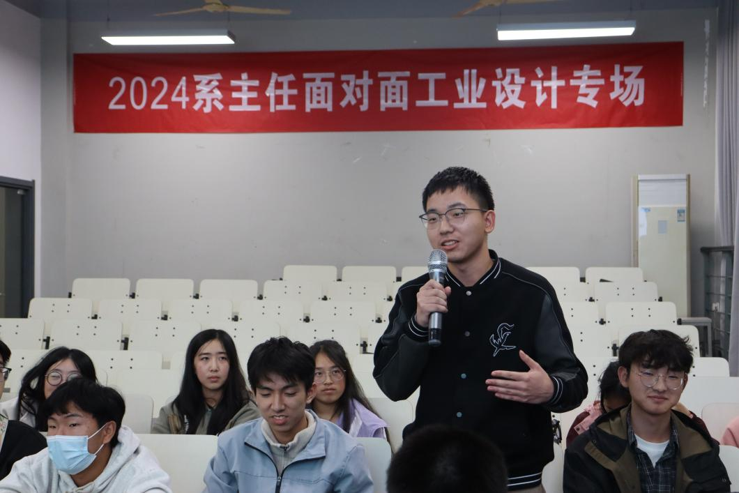 于A104举办了工业设计系主任面对面活动。此次活动有幸邀请到工业设计系主任梁峭、优秀研究生生代表曹艺轩学姐和穆炫呈学长以及优秀毕业生代表杨洋学长,为24级的同学们带来了一场别开生面的经验分享会。活动现场反响热烈,学生们积极参与,收获颇丰。