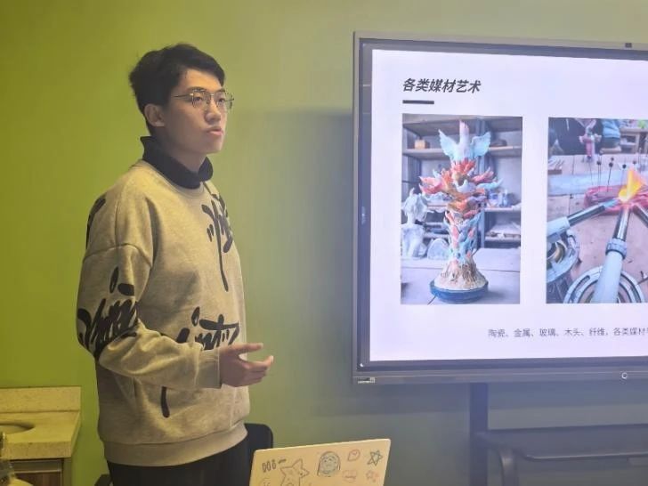 艾好学姐、刘一墨学长和尹若兮学姐从保研经验、学习方法、心态调整等不同方面慷慨相授,将他们的学习经验与心得不遗余力分享给大家。艾好学姐分享了保研经验,从保研基本知识,保研准备工作,保研注意事项三个方面展开叙述。她建议同学们要多参加竞赛,与专业课老师多进行交流,上课需要认真记录公共艺术专业的相关知识与国内外案例,培养审美。刘一墨学长从学习内容、向师长学习、掌握表现力等方面展开。分享了各类媒材艺术、空间与科技艺术、公共艺术策划,以及自己在各类作业与活动中丰富有趣的经历。突出了向师长学习的重要性,并且推荐了多个学习软件促进学习效率。最后提及心态平稳的重要性,只有心态稳定下来才能帮助我们走得更远。尹若兮学姐分享了自己的专业相关作品,拓展了竞赛相关的知识,通过公共艺术作品分享自己的想法与创意,针对不同的比赛分析了相关背景和目标人群,给同学们提供了了许多设计思路,详细讲述了自己的相关行动与经历和想法。同时她也强调了参加竞赛进行思路与想法的碰撞的重要性,并向大家推荐了社会创新设计等相关网络资料。