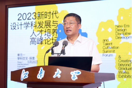 本届论坛邀请了国内设计学科领域权威专家学者共同分享设计学科在交叉学科背景下的前瞻思考和前沿探索。宋协伟教授、吴小华教授、张凌浩教授、季铁教授、贾荣林教授、陈劲松教授和郝凝辉教授分别以《交叉学科的设计学与未来劳动形式更新》《设计的跨界与交叉融合》《设计未来—作为可持续转型的历史、思维与方法》《设计科学的第四范式》《服务国家需要的时尚设计教育探索》《回归纤维艺术的本真 构建尊崇自然、绿色发展的艺术生态》《党的二十大精神视觉化解读》等为主题进行了主旨报告,分享了对设计学科交叉学科发展的前瞻性思考和前沿性实践。