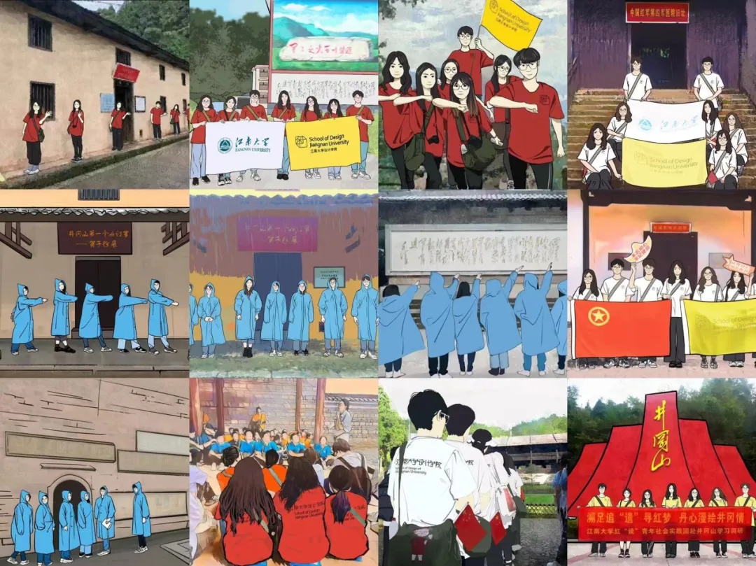 悠悠青山,巍巍井冈;江南实践,造育栋梁。历史的车轮滚滚向前,时代潮流浩浩荡荡。巍然井冈,掩不住岁月的颠沛流离、风雨峥嵘;山河壮阔,诉不尽先人的筚路蓝缕、砥砺前行。“昔日井冈,今为课堂,继往开来,当仁不让”。9天的井冈山实践,师生一起在追寻先辈足迹的过程中领会井冈山精神,在井冈山的革命奋斗史中感悟信仰的力量。星星之火,点燃了初心,在薪火相传、接续奋斗的过程中,“红‘设’青年”将带着九百六十万种情愫与十四亿份赤诚,追寻先辈足迹,传承红色基因,争取用艺术语言和光影故事让井冈山精神放射出新的时代光芒,用设计力量挺起新时代的中国脊梁!