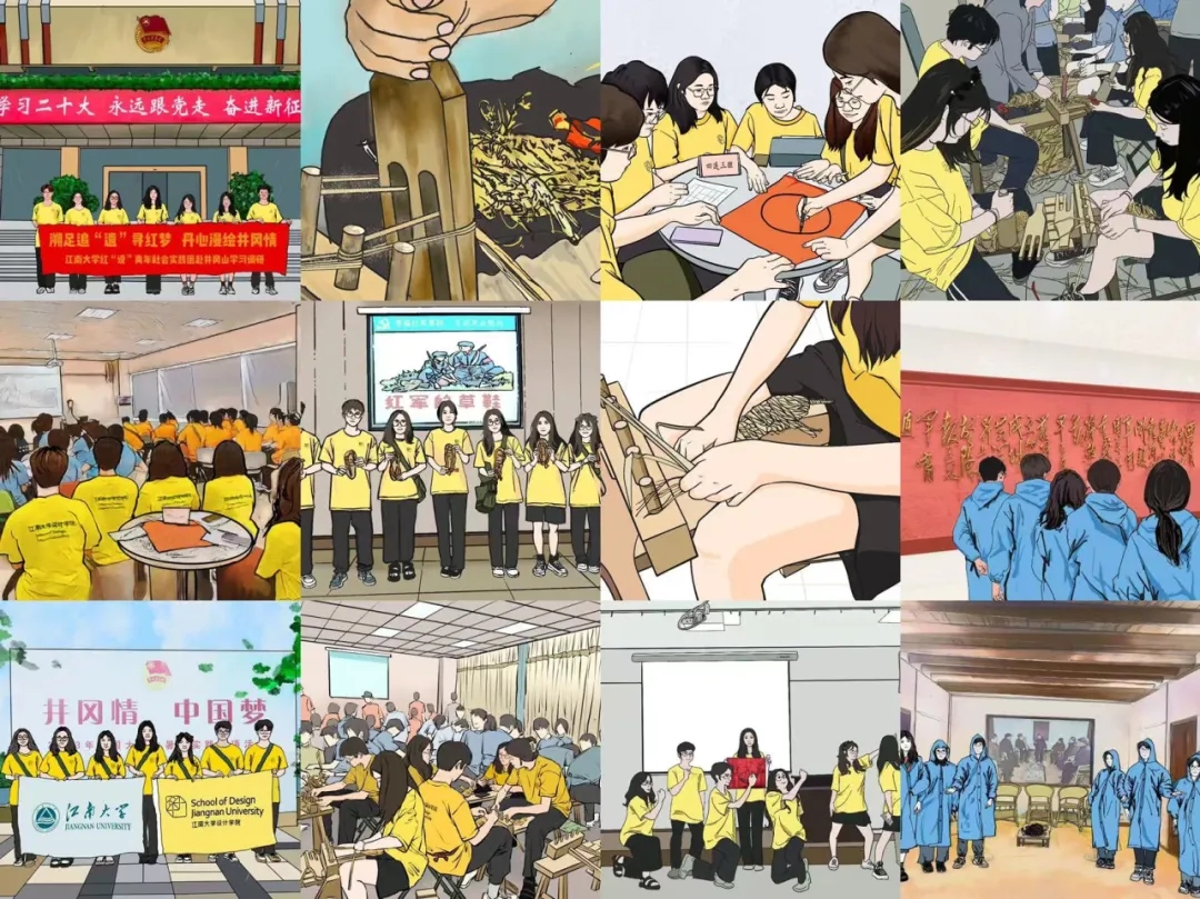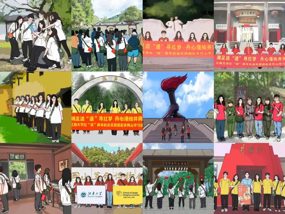 2023年8月,“红'设'青年”团将学科专业特色与红色文化资源紧密结合,探索视觉产品与红色精神创新结合之路,深入井冈山脉9天185小时,追寻先辈足迹12处,拍摄非遗视频60+小时,剪辑视频8个,发布推文11篇,设计系列文创2套,设计系列海报1张,设计卡通系列人物形象1套,手绘红色地标和活动场景50张,制作了一套“足不出户上井冈模型”,因地制宜实现“教育”与“专业”的有效融合。