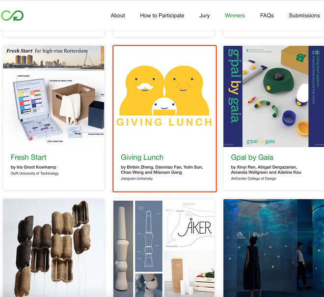 近日,由国际艺术、设计及媒体类院校联盟(CumulusAssociation)发起的CumulusGreen2020设计竞赛发布获奖结果,我院学生团队郑彬彬、范丹妙、孙玉林、翁超等四人的服务设计作品“Giving Lunch”获得荣誉提名奖。