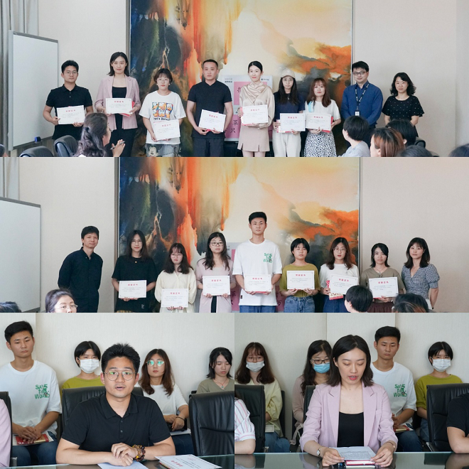 学院党委副书记王晖宣读了防疫工作受表彰的同学名单,本次受表彰的同学共有120名,其中学生防疫工作党员先锋64名,学生防疫工作先进个人56名。王书记代表学院感谢同学们的辛苦付出,希望今后再接再厉,为赢得防疫工作的全面胜利继续贡献自己的力量。随即,远景集团贺鸣先生、王书记、曹副院长、钱菲女士共同为14名受表彰同学代表颁发荣誉证书和奖品。为感谢远景智能集团为学院防疫工作所做的捐赠和帮助,邱建平书记为远景集团贺鸣先生授予捐赠证书。