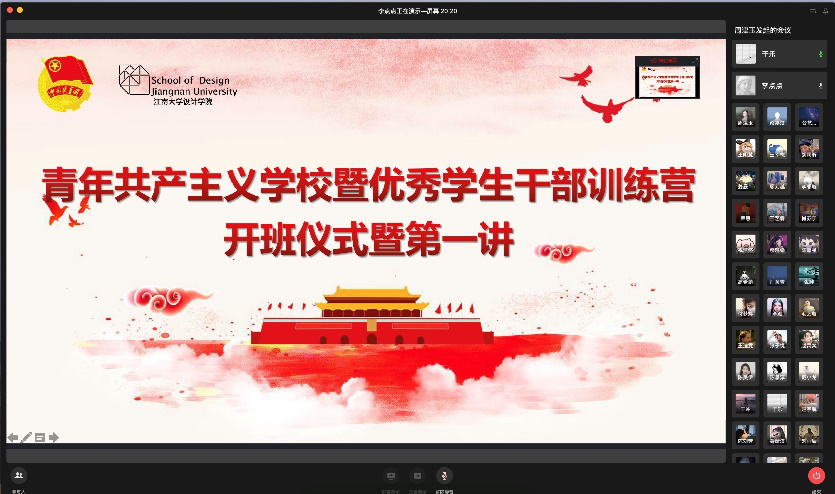 开班仪式上,与会人员观看了学院学生战疫视频《江南设计范,战疫青春行》,共同回顾了疫情期间设院学子在创作战疫作品、志愿服务他人等方面展现的爱国之心与青年之责。