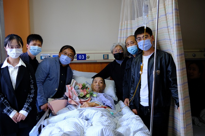探望过程中,服装专业金倩同学代表全院学生向许恩源教授献花,并表达了将以许恩源教授等学院前辈们为学习楷模,在学术道路上砥砺前行,在使命责任上矢志奋斗。