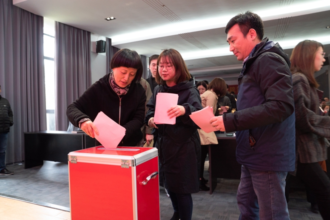 本次大会应到201人,实到人数171,到会参加选举人数已经超过应到总人数的75%,符合选举规定。按照议程,会议通过杨永俭同志为会议监票人;陈香、陈嬿、蒋乾灵、吴欣、龙娟娟、范剑才6位同志为计票人。