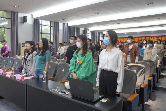 党委秘书陈祥洁,党课班班主任、辅导员章琳以及65名培训班学员参加仪式。开班仪式由章琳主持。