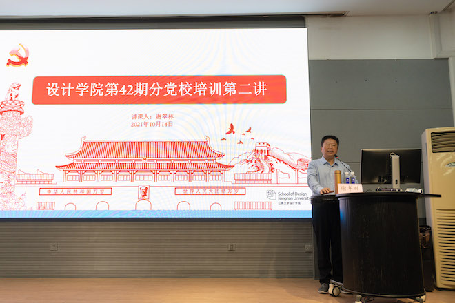 首任院长、中国工业设计学科开拓者张福昌教授在上世纪80年代毅然放弃海外优渥条件,学成之后重返故土,推动中国走自己的设计发展道路的报国故事,勉励在座学子以此次党课培训为契机,将党课学习作为“必修之课”,补足“精神之钙”、树立“学习之标”、躬行“赤子之心”,从而积极响应习近平总书记的青年寄语,“以实现中华民族伟大复兴为己任,增强做中国人的志气、骨气、底气,不负时代,不负韶华,不负党和人民的殷切期望。”