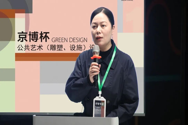 王峰教授带领大赛评审专家团对每件作品的设计创意进行了详细讲解,参评专家分别从创意、美感、环保、应用潜力几个维度为作品打分,大赛共评选出一等奖1名,二等奖2名,三等奖3名。经大赛组委会商议,为鼓励创新、激发创作热情,优秀奖由10名增至15名,特设国际友谊奖1名,所有奖项均进行了现场公示。