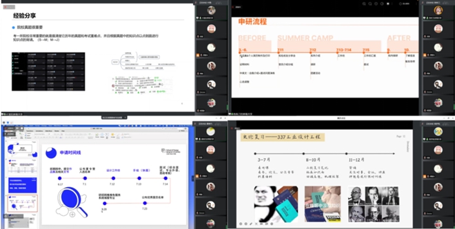 接下来,由鄢祺丹,陈姝汀,蔡雪岩,肖欣雨,叶梓同学分别分享了保研同济、上交、浙大、湖大、江大等名校的夏令营与复试的准备经验。之后进入上午场的自由沟通环节,想保研、考研的同学分别进入分会场,与嘉宾们进行了深入的交流。