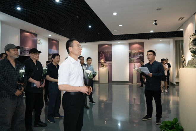 全体师生向钱绍武教授敬献了鲜花,全体与会人员鞠躬默哀。随后,参会人员共同参观了钱绍武教授的雕塑、素描和书法作品,再次感受钱绍武教授的大家风范。
