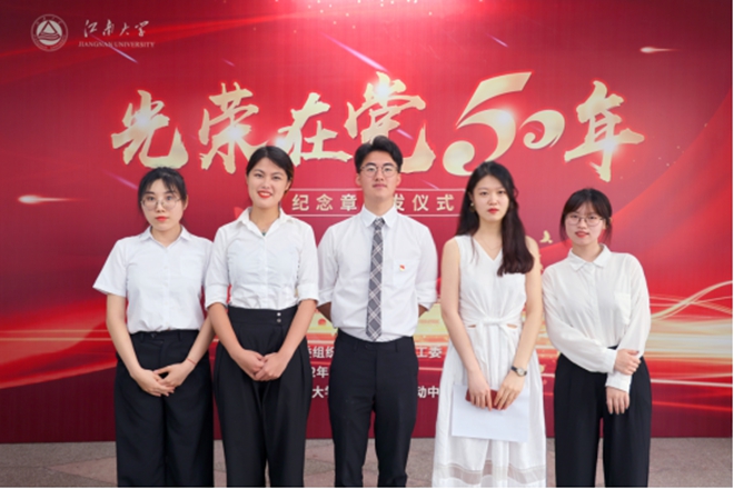 校党委副书记符惠明、党委组织部常务副部长方正泉、“光荣在党50年”老党员代表、离退休党工委委员、党支部书记代表及学生代表等出席颁发仪式。仪式由离退休党工委书记、离退休工作处处长许群主持。