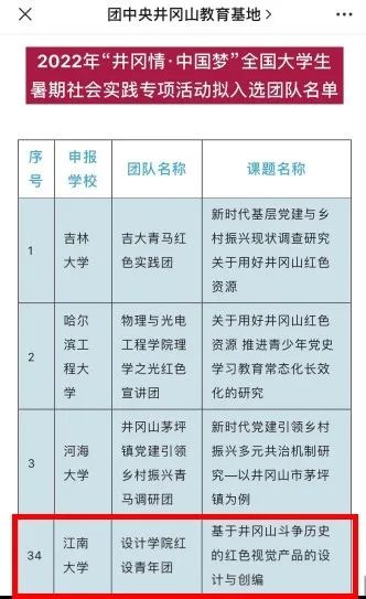 交互设计党支部党员带领学院团学骨干深入井冈山红色文化,团队成员覆盖本硕工业设计、产品设计、数字媒体、环境设计等多个专业。这是继2021年首次入选以来,该团队第二次入选。