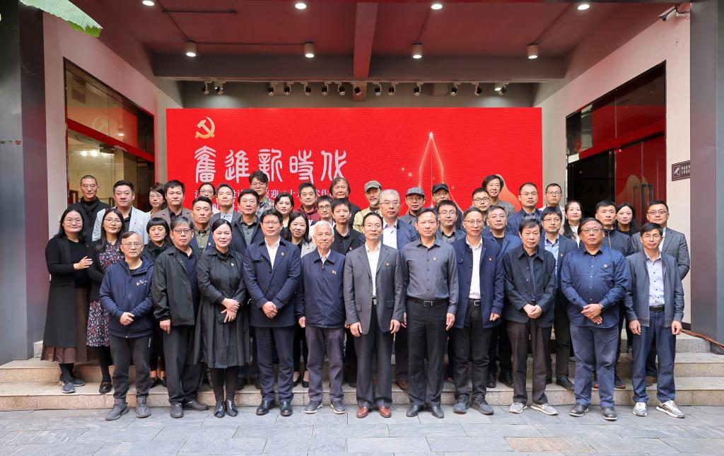 领导嘉宾为喜迎二十大艺术作品展暨“服务社会”设计成果展揭幕