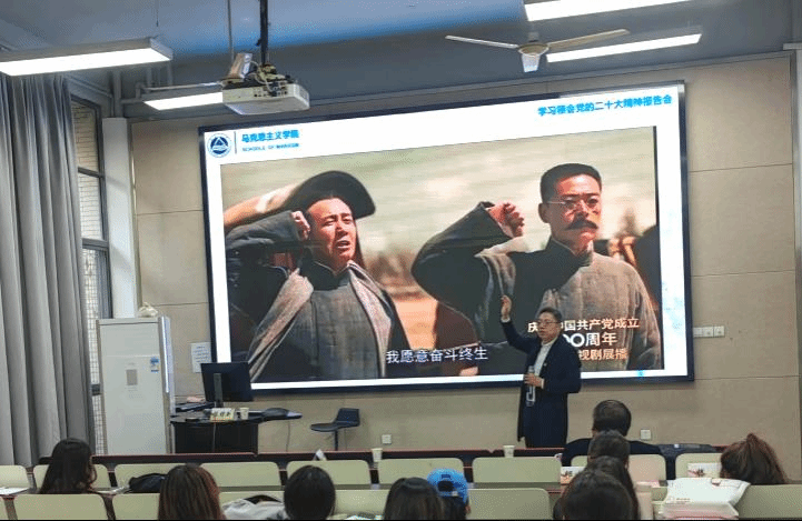党课第二部分:中国道路:中国共产党百年奋斗历程及其历史经验。通过共同观看电视剧《觉醒年代》经典片段,陈老师带领同学们重返过往的峥嵘岁月,以和先辈们同频共振的方式激发学生们的青春力量和青春志向,鼓励设计学子将个人理想追求融入到祖国建设的国之大计中。紧接着,陈老师结合中国共产党成立之初,到如今走过百余年征程,解答了征喻着中国共产党的南湖红船“为谁出发”“从哪里出发”“走出了一条什么样的路”“今天出现在什么样的历史方位”“未来向何处去”这党史学习教育的经典五问,号召同学们要用真心感知“为有牺牲多壮志,敢教日月换新天”的无私豪迈,用学习领会“党的百年奋斗重大成就和历史经验”的精神财富,用行动响应国家和时代对青年人的殷切呼唤。