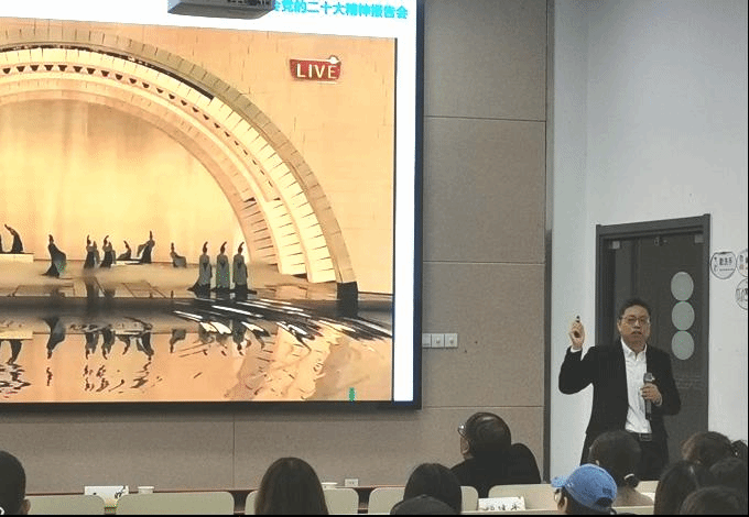 党课第三部分:中国之治:以中国式现代化全面推进中华民族伟大复兴。在这一篇章,陈老师带领同学们共同学习党的二十大报告中的重点内容,深入浅出的解读了十年成就、理论创新、中心任务、教育科技、社会建设等十五个方面,并围绕新时代新征程上党的新使命和新任务,重点介绍了中国式现代化的定义、重要特征和本质要求,希望各位同学们牢记习近平总书记对青年一代的寄语,让青春在全面建设社会主义现代化国家的火热实践中绽放绚丽之花。