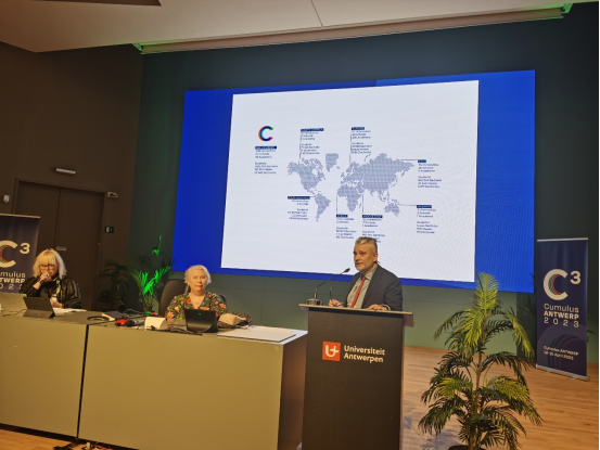 4月12-15日,由安特卫普大学设计科学学院主办、皇家美术学院联合承办的2023国际艺术与设计院校联盟(Cumulus Association)春季年会于安特卫普顺利召开。会议以“冲突中的连接和创造“为主题,与广大设计师、艺术家、教育家共同探讨探索在这个特殊的时代背景下,文化和创意产业如何提供社会韧性、抚慰和创新模式。我院巩淼森副教授,作为联盟执委,受邀参加联盟执委会工作会议和联盟春季年会。4月11号,Cumulus联盟执委会召开工作会议,审议了2022年的工作报告、2023年联盟秋季会议和2024年春季会议承办院校等关键事项。