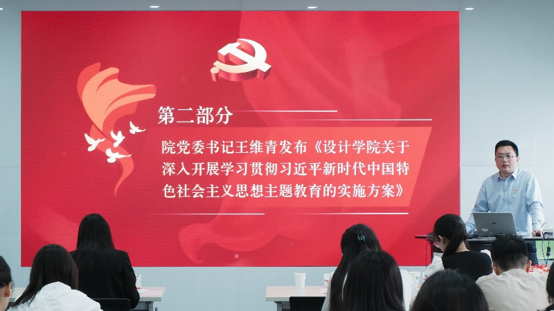 交互设计党支部书记王彤彤作为学生代表进行发言,她分享了支部近期读书活动的成效与收获,并代表学生支部全体支委做出庄严承诺,将认真落实主题教育的各项活动安排,积极广泛开展读书活动,充分发扬“挤”和“钻”的精神,从经典著作中汲取智慧和营养,从原著原文中接受思想淬炼和精神洗礼,从而不断筑牢支部的思想堡垒,以实际行动推动学习贯彻习近平新时代中国特色社会主义思想走深走实。