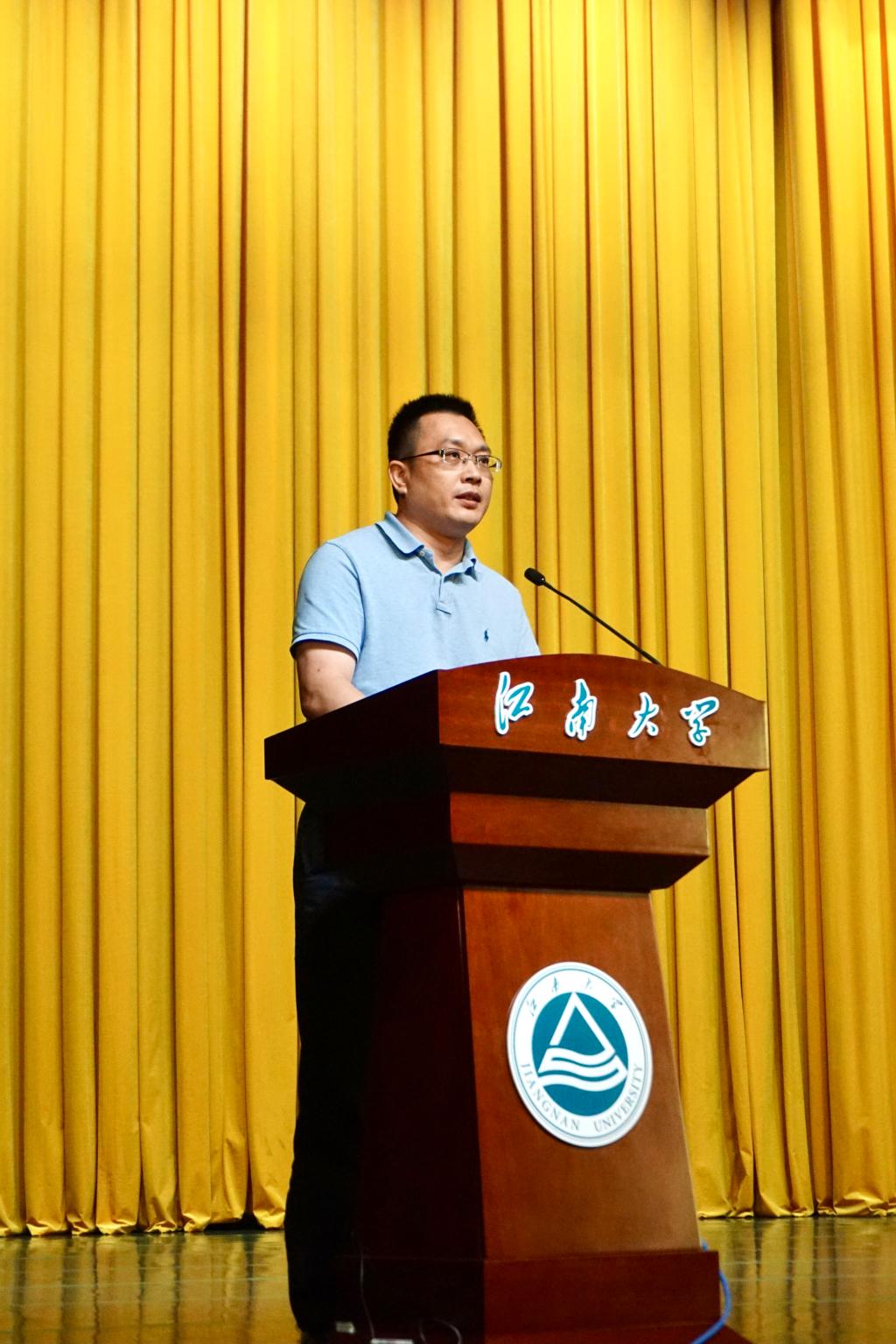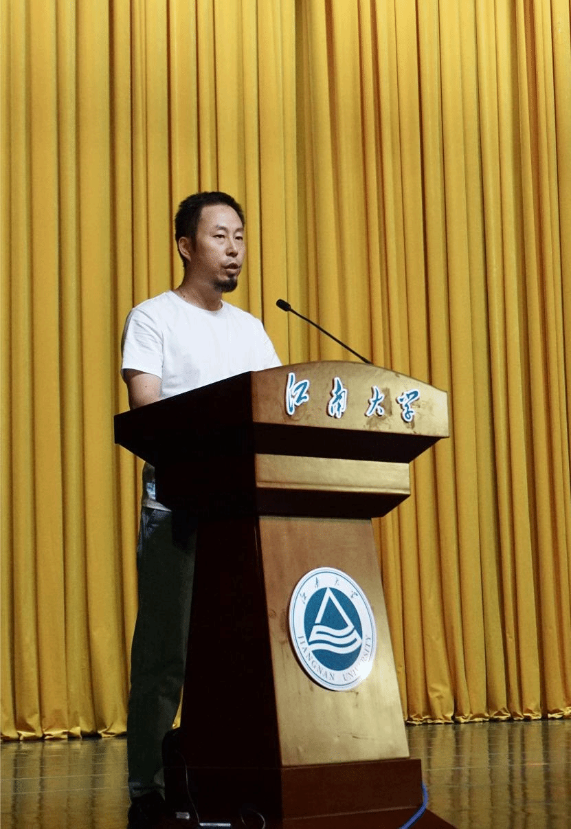 产品设计系黄昊老师作为班主任代表发言,他刚刚带领的产品设计1902班不仅获得了江苏省优秀班集体,江苏省百强团支部,而且班级同学有70%的入党申请率和60%的升学率等等。他将自己二十多年的班主任工作理念总结为三个关键词:引导、放手、关心。他寄语新生在专业的基础上找到自己喜欢并且擅长的领域,全身心投入,积累知识,全面提升自己。
