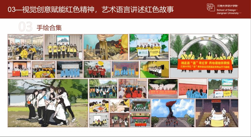追寻领袖足迹,感悟思想伟力。2016年2月习近平总书记在江西考察时强调“井冈山是革命的山、战斗的山,也是英雄的山、光荣的山”。为深入学习宣传习近平新时代中国特色社会主义思想,全面贯彻落实党的二十大精神,设计学子前往井冈山实地感受历史脉搏,用脚步丈量井冈风貌,用内心感应红色精神。基于井冈山斗争的红色视觉产品的设计与创编,非物质文化遗产的传承与传播,团队用生动有趣的设计为我们讲述了井冈山的故事,以艺赋能,传承井冈山精神,赓续红色基因。