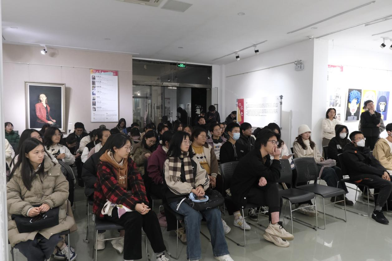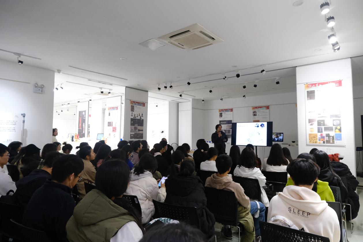 本次活动邀请了在视觉传达设计专业上颇有建树的薛雷奇学长分享经验,他以生动形象的语言将自己的创作创业经历喻作种田文,分享创业中的详细流程,为同学们未来的发展指明方向。接着学长从对AI的看法、怎样从学院风转换到商业风格,怎样体现传统文化的精神内涵进行答疑,认为大学生应该去认知自我和找到自我天性,要重视实践,并且不能为设计而设计,为传统而传统,要用心去传达“美”。