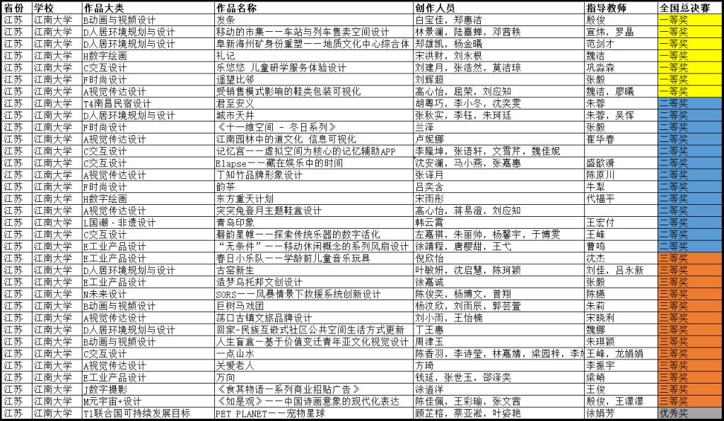 获奖作品及学生名单