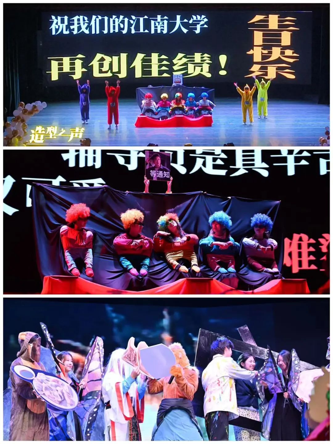 第二篇章“恰同学少年”歌舞串烧《trouble maker》,炫酷的灯光,独特的姿态,舞动出青春的旋律。《这真的是梦吗?》展现一位同学作画时的奇思妙想,荒诞离奇又趣味横生。《五丑闹青山》用诙谐幽默的语言,编排出设计学子想对校院说的心里话。《Universal Hogwarts Day》用歌舞演艺快乐魔法,展现出设院人的舞姿与气韵。《公主请唱歌》发挥巧思,载歌载舞。中间还穿插了激动人心的抽奖送福利环节,欢声笑语环绕着,共庆这美好的夜晚。
