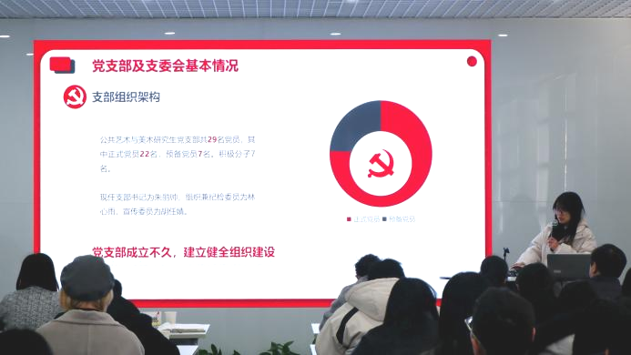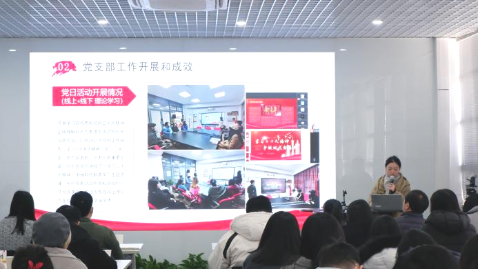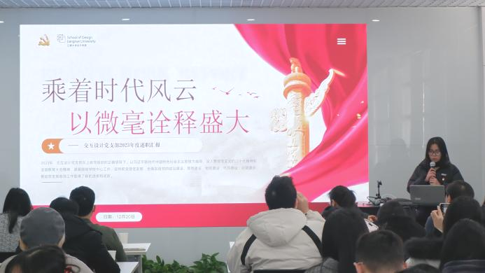 党委副书记兼副院长江琳娜对本次学生党支部书记的述职情况进行综合点评。她首先代表学院党委对各支部书记及支委这一年的辛勤付出表示感谢,并表示,各支部书记作为支部党建工作“第一责任人”在过去的一年中团结带领支部党员完成了各项工作,使得“三会一课”制度扎实完善、“七个有力”举措落实到位,“一支部一特色”品牌创建卓有成效,有效促进了支部党员先锋模范作用和支部战斗堡垒作用的良好发挥。在肯定成绩的同时,她也就进一步抓好基层党建工作提出了三点要求:一是抓“融合”,全力推进党建与事业发展“一融双高”,以党的创新理论的学习牵引推动设计价值的实现;二是抓“共建”,深入探索“党建共建”的创新机制,在不断“走出去”的校企联动中激发党员队伍的活力和创造力,持续擦亮支部品牌;三是抓“落实”,合力引领支部党员充分发挥先锋模范作用和文化传播能力,用心用情落细落实“我为群众办实事”举措。