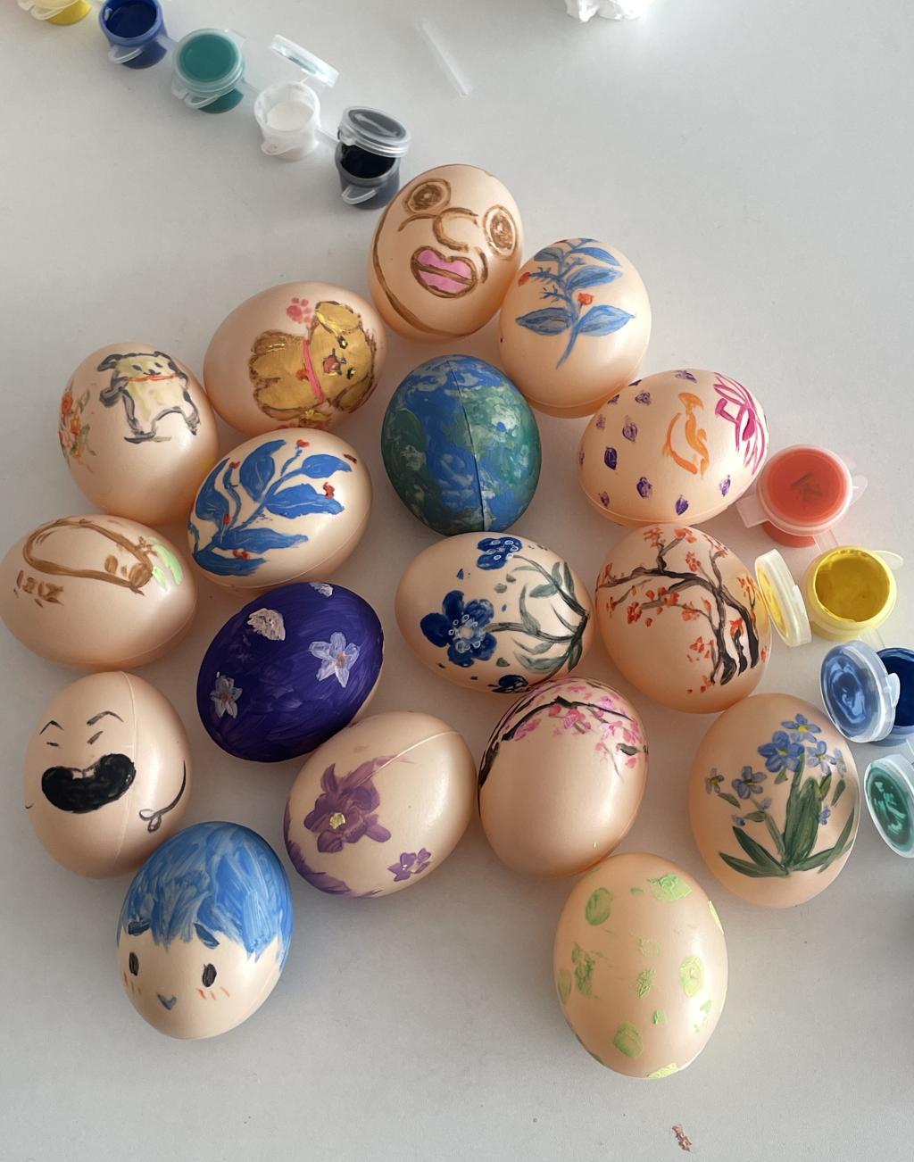 的同学们齐聚榴园公寓活动室,屏气凝神,全神贯注,尽心绘制好每一笔色彩,将他们对春天的展望和巧思,倾注在作品上,一件件成品的出现,展现从无到有的妙不可言。