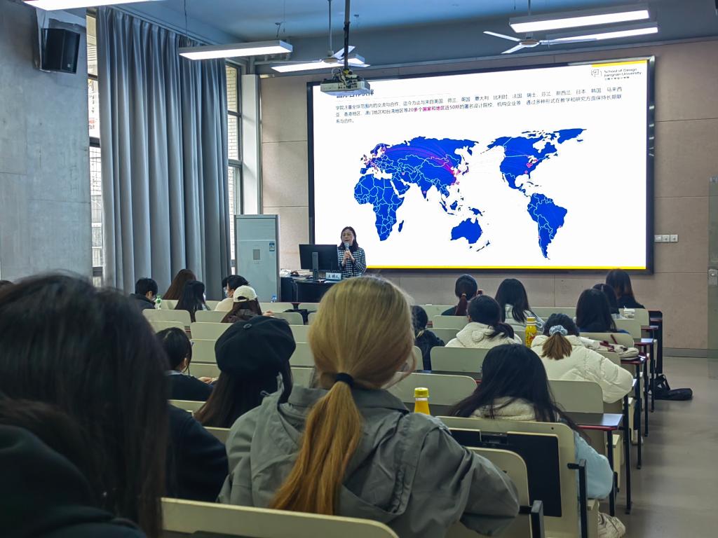 特邀嘉宾石媛媛老师到场就同学们关心的重点留学国家和地区以及重点留学院校做了细致讲解,从语言准备,到作品集是什么以及如何准备,再到时间规划与费用预估,她都向同学们做了详细讲解。学院国际交流办公室李爱华老师也到场给同学们进行交流交换项目辅导,她结合学院现有的交流交换项目,分别对CSC公派项目、免学费交换项目、自费交流项目以及自费联培项目逐一做了详细讲解,并对新西兰梅西大学本硕连读项目做了重点推荐。