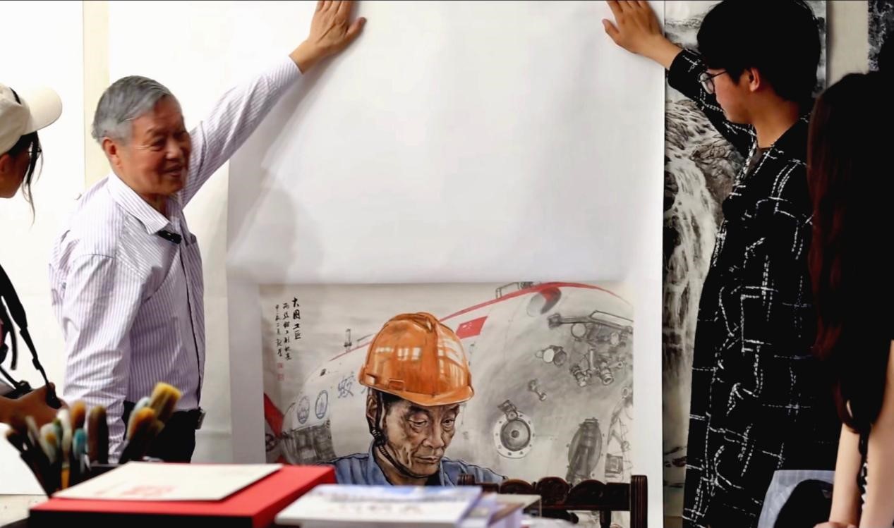 实践团队拍摄刘教授的绘画作品