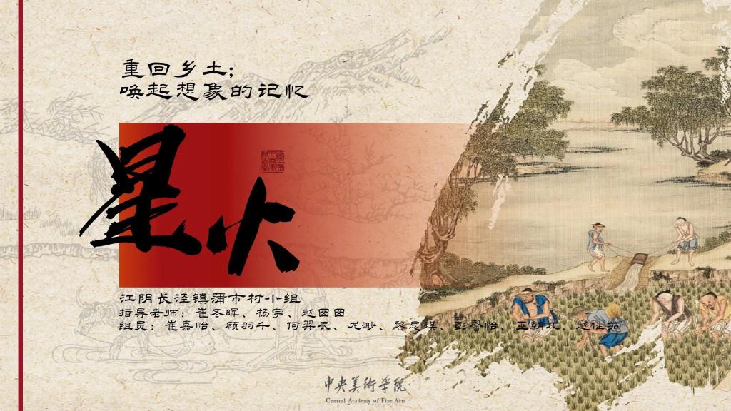 三校40余名学生,以无锡江阴市蒲市村、锡山区圩厍村和惠山区万马村为背景,进行了为期数日的艺术创作。在结营式上,各小组分别就各自的创作历程与成果作品进行了细致汇报。六个小组通过艺术装置的形式,生动展现了无锡乡村美学的独特魅力和艺术介入乡土的创新活力。指导老师杨冬江、崔冬晖、周林、管沄嘉、杨宇、赵囡囡、姬琳分别对六组作品进行了深入点评。