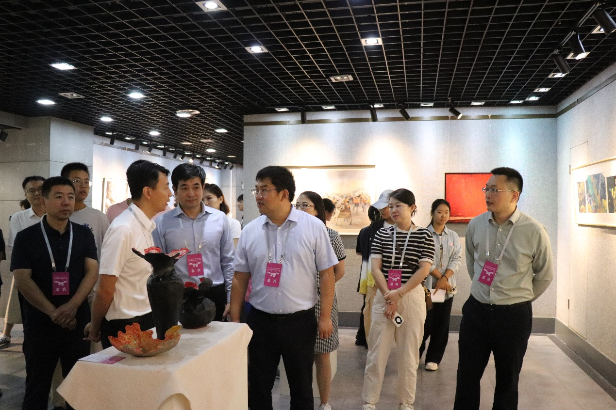 最后长三角设计学科党建高校联盟各高校成员参观“七十五载风华颂,墨启创设新征程”——庆祝新中国成立75周年师生作品巡展,本次巡展是长三角设计学科党建高校联盟单位落实“党建+美育”的生动实践。活动以反映时代风貌、彰显时代精神为创作指向,共征集长三角地区10所高校艺术与设计学科师生创作的书画、摄影、动漫、文创及雕塑等门类艺术作品130余件,其中日本无码