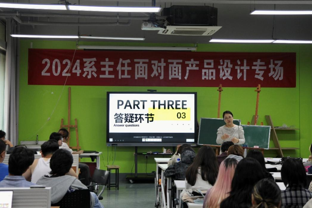 A205特别开展了产品设计系主任面对面活动展。活动邀请到了产品设计系主任钱晓波老师、优秀学生代表方巧芸学姐和栾旭学长与2024级新生进行经验分享与互动交流。此次活动进展顺利,受到学生们的热烈欢迎。在这里,系主任分享了多年的行业经验与独到见解。无论是对设计的热爱,还是对未来的迷茫,都能在这次交流中找到答案。