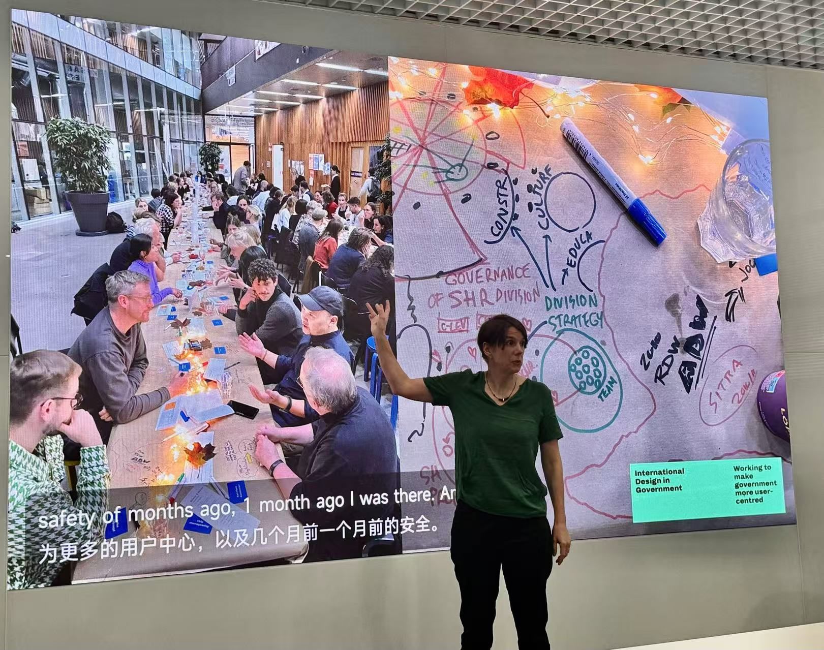 Sabine Junginger教授首先分享了她的研究的核心设计理念:设计能够引导、赋能并吸引我们去探究人类体验,激发新的行动可能性,从而将人类行为融入并转化系统,使之与人类需求相契合。随后,Junginger教授结合自己在美国、英国、德国和瑞士等地超过20年的设计实践经验,介绍了她通过设计思维推动智能交互、社会服务、公共政策和组织变革的具体案例。