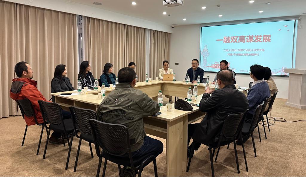 党委书记王维青、产品设计学科带头人邓嵘教授、产品设计系主任钱晓波副教授、产品设计系党支部书记董玉妹副教授和支部、系部的教师代表共十余人参加了活动。