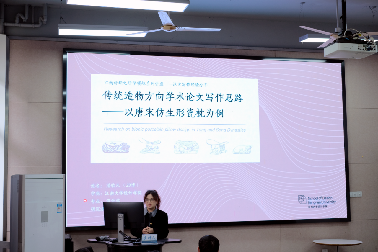 作为本次分享会的首位嘉宾,徐之殿奎学长以自身学术经历为基础,系统分享了国际设计期刊论文写作与发表的实战经验。潘临凡学姐以硕士论文《唐宋仿生型瓷枕》为例,系统阐释了科研论文的撰写逻辑与实践经验。胡珑雪学姐以“我的研一小论文”为主题,分享了研学论文的发展时间线、文献计量法,以及如何选择期刊等内容。