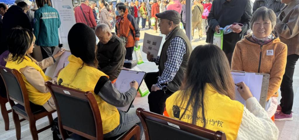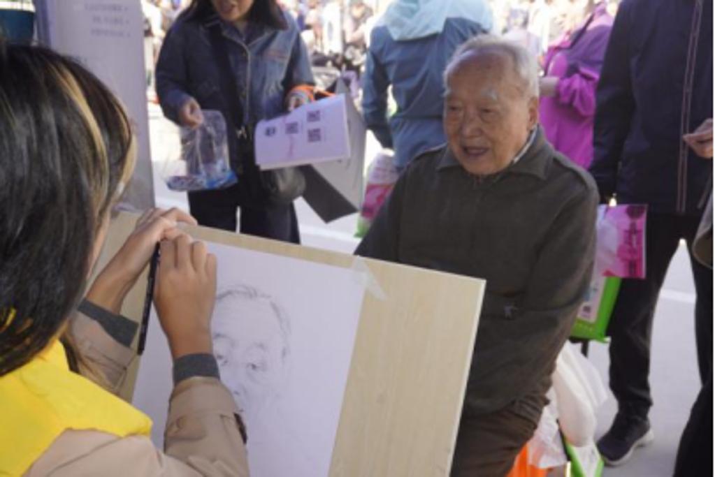 “益”起设计志愿服务团开展“丹桂飘香绘温情”百幅肖像志愿活动,用20分钟定格60年光阴,以专业所学向学校老一辈建设者致以节日敬意。
