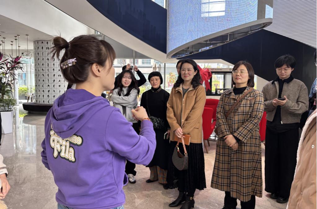 一行在企业代表的陪同下,参观了安踏大厦一楼品牌展示区,直观了解斐乐品牌发展历程及办公环境,近距离感受企业的发展理念与文化氛围,为后续校企深度合作和学生职业规划搭建坚实基础。