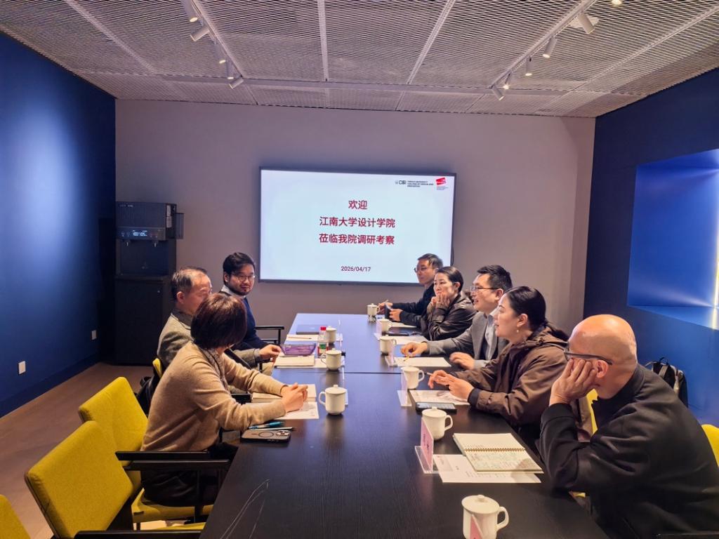 党委书记王维青、院长魏洁等一行人在同济大学设计创意学院院长辛向阳教授的介绍和引导下,参观了同济大学设计创意学院展厅、教室、实验室;结合设计学科未来建设发展和立足国家战略推动高水平设计人才培养,就学科建设、人才培养、国际交流合作、实验室建设等方面内容进行了充分交流与深入探讨。