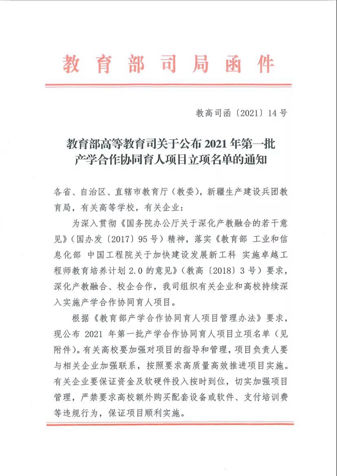 自2014年起,教育部高教司实施产学合作协同育人项目,以产业和技术发展的最新需求推动高校人才培养改革。为了响应《教育部高等教育司关于征集2021年产学合作协同育人项目的函》的号召,巩固校企合作建设成果,加强校企合作深度融合,推动高校教学改革和实践条件建设。通过教育部产学合作协同育人项目,旨在推动高校教学内容更新及课程体系完善,提升高校在实验教学领域的综合能力。